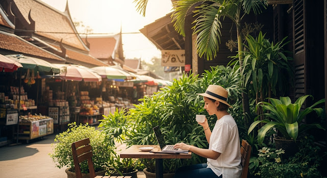 Nômade digital na Tailândia / Imagem gerada por IA. |